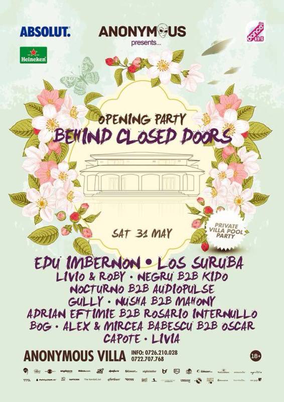 Anonymous ne prezinta prima petrecere Behind Closed Doors de anul acesta in data de 31 Mai. Locatia este aceeasi ca si cea de anul trecut, Anonymous Villa. Pentru petrecerea de debut de anul acesta, organizatorii au ales nu mai putin de 20 de dj. Asadar din line-up fac parte:
