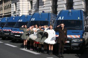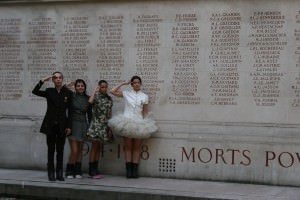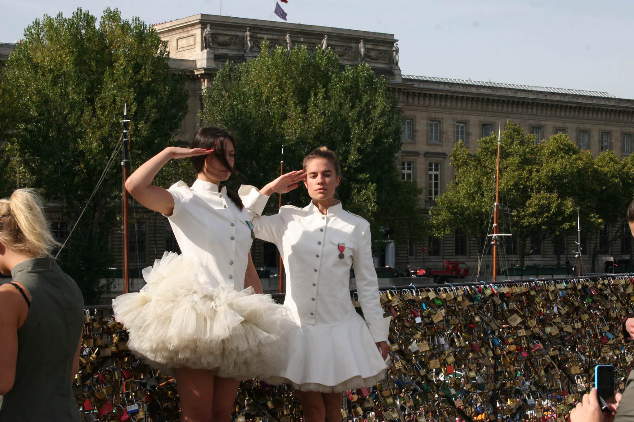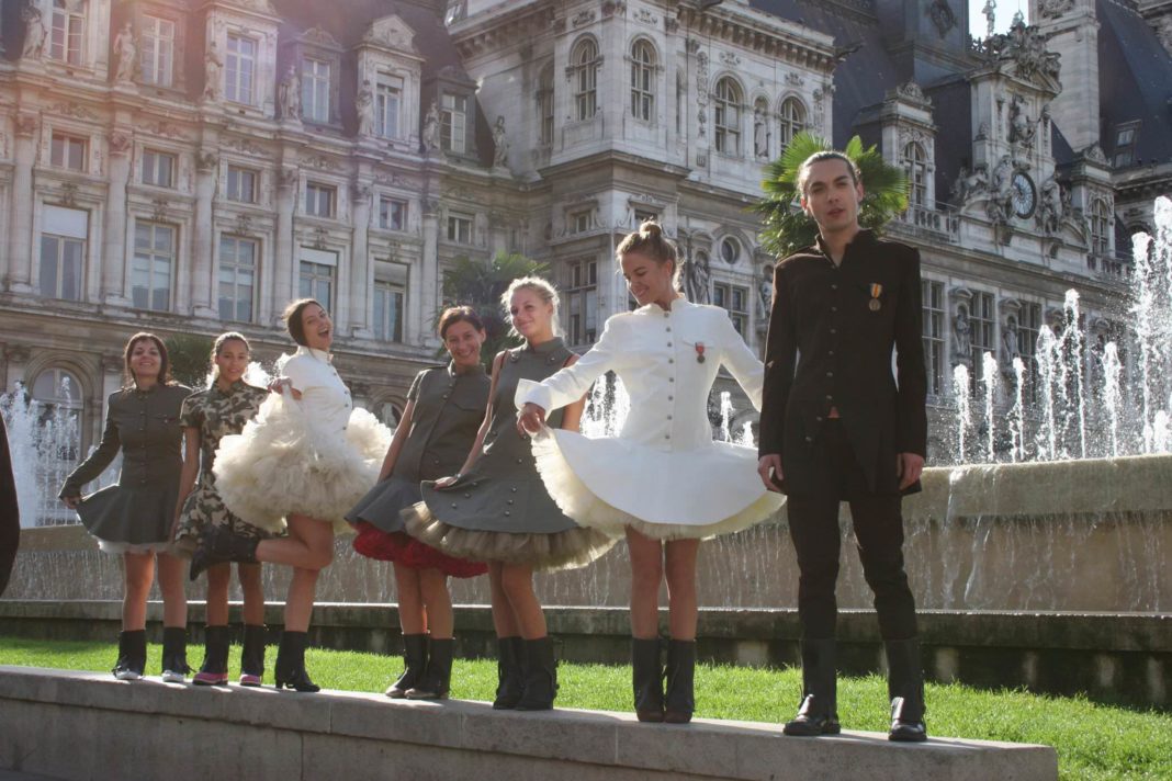 Marșul intinerant a început din fața Centrului Georges Pompidou, a continuat cu Primaria Parisului(Hôtel de Ville), Catedrala Notre-Dame, Scoala Superioară Națională de Arte Frumoase, Muzeul Luvru, Piața Vandome și Opera Garnier. Destinația culminantă a marșului a fost Arcul de Triumf. Însuși designerul a purtat haina soldatului necunoscut. Din cei care au transmis parizienilor mesajul pentru pace a făcut parte și actrița Maria Dinulescu, alături de manechine românce și de naționalitate franceză, care au susținut proiectul pacifist printr-o atitudine entuziastă și deschisă.