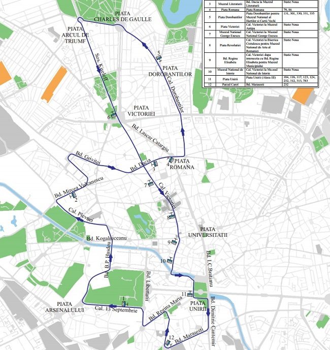 Traseul autobuzelor RATB pe linia Noaptea Muzeelor